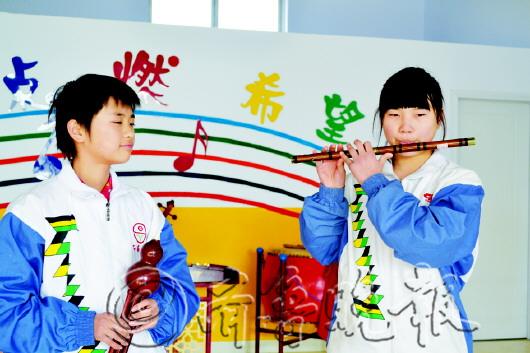 文/片 本报记者 谭正正 赵树行 本报通讯员 张秀全 惠民县石庙镇第二中学,有一批土生土长的农村娃玩起了乐器,还组建了一支管乐队,就是这样一支“土乐队”在2012年市级乐队比赛中获得了一等奖。 在这支“土乐队”中,穿着朴素的孩子手中“玩弄”着大提琴、口风琴、大鼓、中阮、长笛等10多种乐器。负责学校活动的团支部书记赵代华告诉记者,这些孩子有很多都是留守儿童,爸妈在外地打工,平时跟着爷爷奶奶。学校为了满足孩子要求,花费10万元给他们建立了活动室。乐队教师王春梅在该校任教已有16个年头,她坦言:“孩子爱好音乐,可是学校实在没有条件满足孩子的要求,看着这些农村娃,我都不好意思不提高自己。” 乐队从组建到小有规模用了近6年的时间,从最初只有5个学生到现在50多个。开始家长怕耽误孩子学习,然而孩子出色的文化成绩也让家长们转变了原先的想法。初三学生姚一萍面临升学,但她并没有放弃对扬琴的爱好,像她一样的同学在乐队中还有不少,更让人刮目的是她们的文化成绩在班里也是出类拔萃的。“我觉得在乐队中,大家学会了相互帮助,因此在文化学习中也相互支持,反而促进了学习成绩的提高。”姚一萍说。 学校除了这支“土乐队”,还有乒乓球队、戏曲队、舞蹈队、主持队等。该校宋清春校长认为,在中学阶段,孩子的文化成绩固然重要,然而孩子的爱好、个性发展也不可忽视。宋清春和学校的其他领导达成共识,认为过分将眼光盯在升学考试上会泯灭孩子的天性。据了解,在培养孩子综合素质的过程中,该校的升学成绩在全县19个初中里面名列前茅。