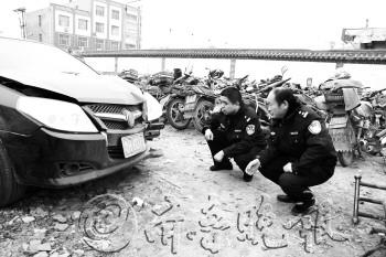 | 办案民警在查看肇事车辆。 |