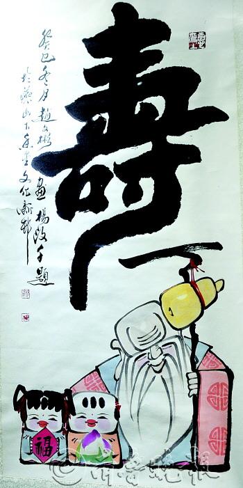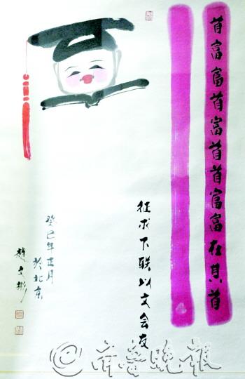 1月5日上午10点,在烟台市美术博物馆,我国著名书画家杨汶千与赵文彬的同名迎春书画展正式开展。在百余名烟台市各界书画爱好者的见证下,杨汶千将亲手抄写的14米长、3米多宽的小楷《心经》书法作品赠予峆 寺。而赵文彬更是展示了以“首富”为题材的漫画作品中的上联,并通过本报向烟台市民“求下联”,还许诺一旦对中,就会馈赠一幅亲笔书画作品。