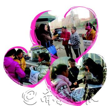 | 4日,燕儿岛路第一小学学生在义卖报纸,给昊昊筹集爱心款。 |