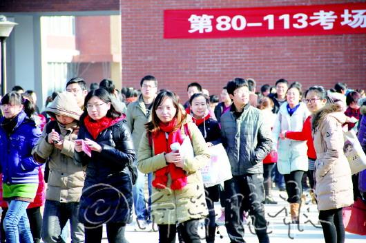 本报1月5日讯(记者 谭正正) 1月4日,号称“第二高考”的全国硕士研究生入学考试拉开“战幕”。滨州学院作为滨州市唯一的考点,成为众多考研大军的“战场”。据了解,多数提前出场的考生为已经就业的上班族。 4日上午,记者在滨州学院了解到,滨州学院是滨州市唯一的考点。第一场考政治,在离考试结束不到30分钟时,有很多考生开始陆陆续续地走出考场,考生的脸上略显轻松。记者采访了解到,提前走出考场的考生多数是上班族。考生王先生说他已经毕业3年了,以前本科毕业时考研失败,现在在滨州的一家企业上班,平时工作之余看看专业书籍,针对此次考研王先生称抱着平常心态来面对。“考上固然好,考不上也没什么,反正有工作了,压力相对刚毕业的学生较小。” 在机关单位上班的考生李先生的说法代表了大部分上班族的想法,在单位一个高的学历对于升职或是加薪都是有帮助的。“我家里没什么背景和关系,什么都要靠自己一点一点的努力,周围的人已经是研究生毕业或者正在考研,因此我也想考考看看,毕竟毕业3年了,有些知识忘得差不多了,今年先试试,不行明年在来。” 滨州学院中文系的陈同学说,其实写字较快的都能提前完成,但是为了不留遗憾,我们都会反复检查,以求心安。“毕竟我们在校的学生把考研看得很重,为了考研很多人放弃了可能工作的机会,不想出差错,哪怕能检查出一道错题也是好的。”