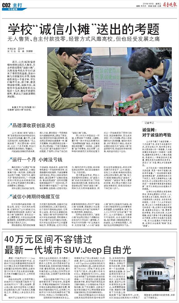 学校“诚信小摊”送出的考题