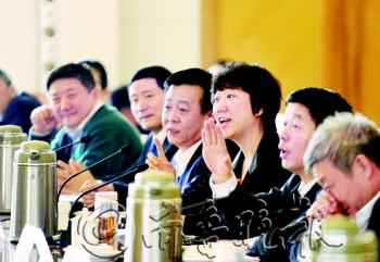 18日,在省政协分组讨论中,政协委员张建宏和黄淑玲在小微企业贷款问题上你一句我一句,各抒己见,讨论也引起了其他委员积极加入,气氛很热烈。 本报记者 王媛 摄
