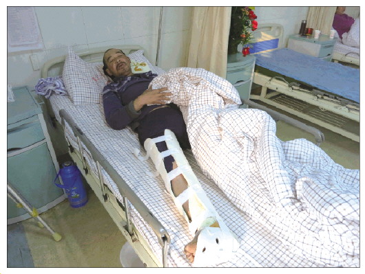 在医院时,右小腿骨折的张荣杰生活全由护士照料。