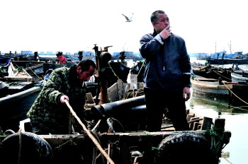 人工成本高>> 小马力渔船多是夫妻一起干