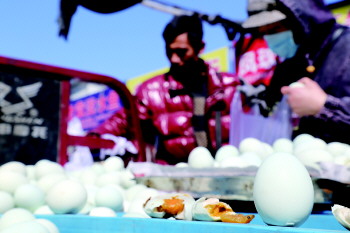 3月20日,红利市场一辆贩卖咸鸭蛋的小推车被“烟台大妈”们包围,鸭蛋遭到了抢购。21日就是春分,素有“春分立蛋”的说法。在每年春分这一天,各地民间流行的“竖蛋游戏”,4000年前,华夏先民就开始以此庆贺春天的来临,“春分到,蛋儿俏”的说法流传至今。贩卖咸鸭蛋的“样本蛋”,也因为立起来就流油而卖得很好。