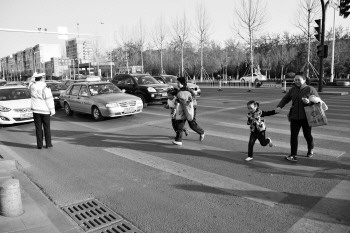 20日,在张店华光路上,交警指挥机动车停让斑马线上的行人。 本报记者 王鸿哲 摄