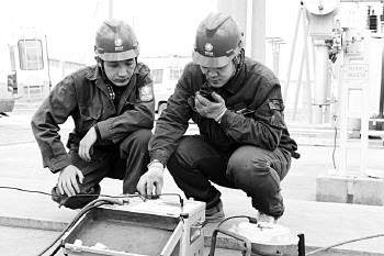 近日,邹城市供电公司陆续检修23座变电站和涉及输配电线路的安全隐患,提前消除电力设备安全隐患。图为在邹城市35千伏匡庄变电站春检工作现场,检修工作人员正在测试二次设备继电保护定值定比。 本报通讯员 朱璐 摄