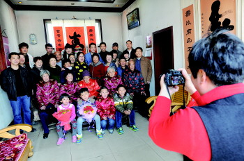 ▲孔老太太和家人合拍五世同堂全家福。