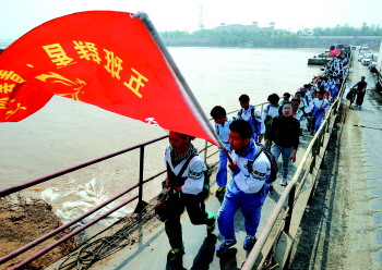 “成功了!”4日下午7时,当最后一个班级喊着嘹亮的口号回到学校时,819名山大附中2012级学生用自己的勇气、毅力和双脚兑现了旗帜上的誓言——“用双脚丈量成功之路”,完成了黄河鹊山30公里徒步远足活动。