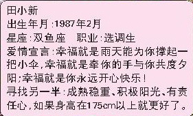 田小新 出生年月:1987年2月