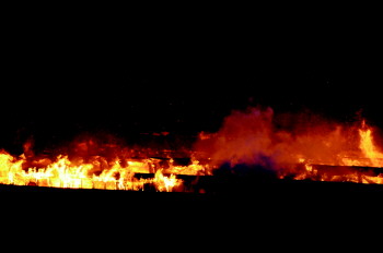 5月4日19时,厂房火势熊熊。 本报记者 马志勇 摄