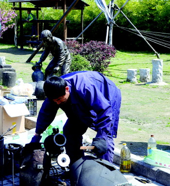 作品描述:爆米花大哥,你选在这个雕塑附近爆米花,确定不是在模仿秀?