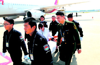 “通常情况下,旅客需要先通过卫生检疫、海关货物检查,再由边检机关进行护照、签证审查,结束人证对照等程序才能入境。”了解到病人的情况后,烟台机场边防检查站执勤业务一科科长刘长顺决定特事特办。联合各个部门,开通绿色通道,实现无缝隙通关。