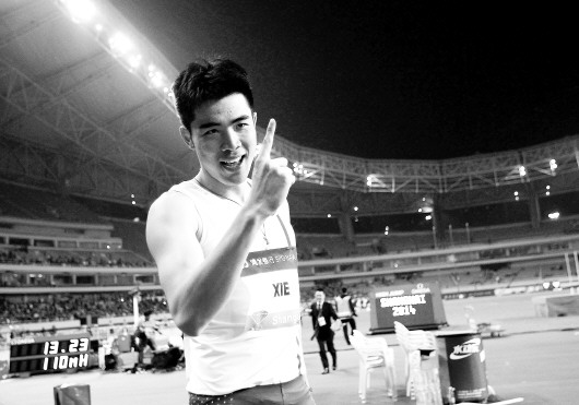 5月18日,在2014国际田联钻石联赛上海站男子110米栏比赛中,谢文骏以13秒23的成绩获得冠军。 新华社发