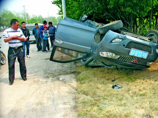“黑出租”翻车甩出俩学生