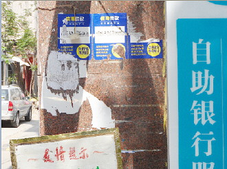 近日,不少市民反映,小区内和周围闹市区开始有大量的贷款小广告张贴,甚至于还有直接将宣传内容印刷在墙上或地面上,就连某家银行的一处营业网点外墙上也被贴上了“信用借款”的宣传广告。为此,有些市民怀疑这类广告是否可以相信。为此,记者针对此类问题进行了调查。