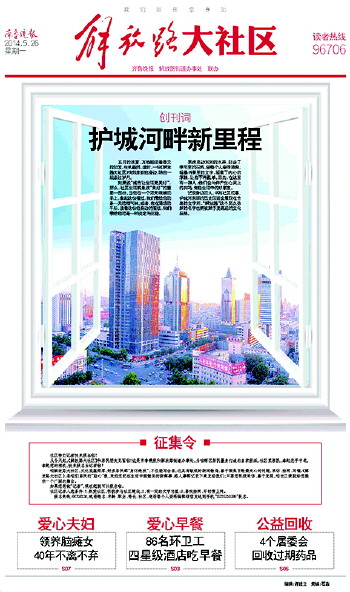本报5月26日讯(记者 肖龙凤) “《解放路大社区》,不仅仅为居民提供信息服务,还要让居民真正参与到办报中来,成为真正意义的居民自己的报纸。”历下区解放路街道办事处党工委书记李乐军表示,办一份居民自己的报纸,才能提升社区文化,促进社区文化融合。