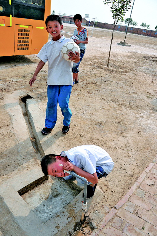 | 布鞋,是这支球队里比较普遍的“装备”。但每一个小队员练习起来都十分认真。 |  | 老师边学边教,球队里的孩子们大多是留守儿童。 |  | 学校送给小学生曾现钱的一双新球鞋,他一直舍不得穿。 |  | 孩子们个个晒得脸色黑红。 |  | 训练结束后,几个孩子轮流喝起自来水。 |  | 日常的训练就是在一片盐碱地操场上。 |  | 赢了比赛后孩子们欢呼雀跃起来。 |
