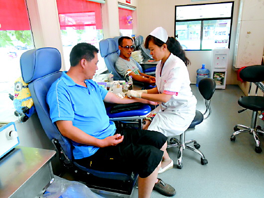 6月14日是第11个世界献血者日,山东省献血中心在章丘设立的爱心献血屋接待无偿献血者。今年献血日的主题是“安全血液挽救母亲生命”。当日,很多市民走进爱心献血屋,挽起袖管,为社会献出一分爱心。