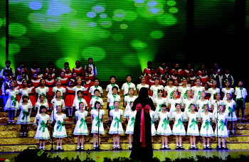 香港路小学的学生参加合唱比赛。