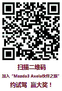 参与方式:拨打0531-85196243进行电话报名;本周五直接前往魏家庄万达广场,看到Mazda3 Axela昂克赛拉就找到“大本营”了;手机微信报名,扫描二维码(如图所示),即可注册报名参加“Mazda3 Axela昂克赛拉伙伴之旅”!