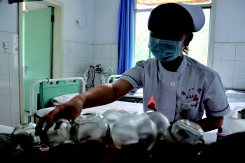 淄博市中西医结合医院医护人员为患者拔火罐治疗。(资料片) 本报记者 王鸿哲 摄