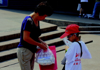15日早上还不到8点半,小报童们就已经来到台东步行街集合。因为下雨,本报特意给每一位小报童准备了雨伞。下雨天,给卖报带来很大困难,但这丝毫不能影响小报童们卖报的热情。小报童王志宏是第一个到步行街卖报点领取报纸的小报童。“阿姨好,我是齐鲁晚报的小报童,买份报纸吧。”王志宏抱着报纸欢快地跑着,看到路人经过,他就停下来,礼貌地卖报。路人买报时,他还主动帮路人打伞。看着这个穿着白T恤,戴着小红帽在雨中奔跑的小身影,不少路人都竖起大拇指。