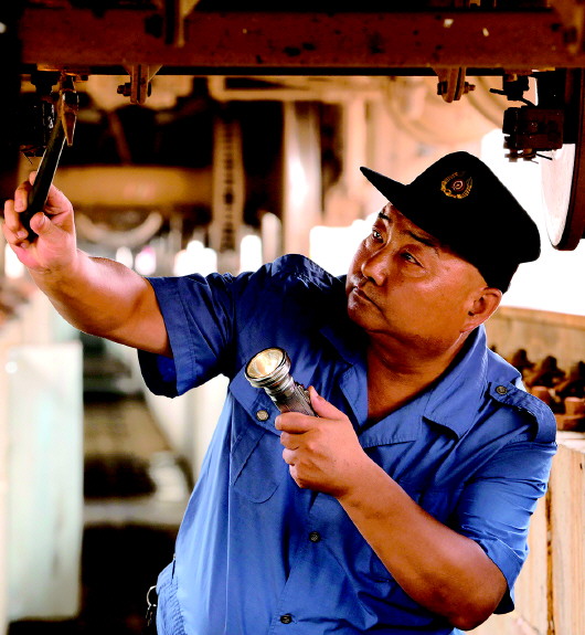 李建华进行客车库检作业。