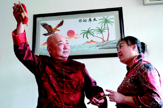 每次登台演出前,李建华都会让爱人帮忙把关。
