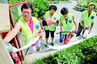 为保障社区居民生活安全,创建平安社区,29日上午,竹岛街道办事处天翔社区8名安全联防员对辖区消防设施、小区楼宇门、居民家中防盗网进行全面检查,排除安全隐患。