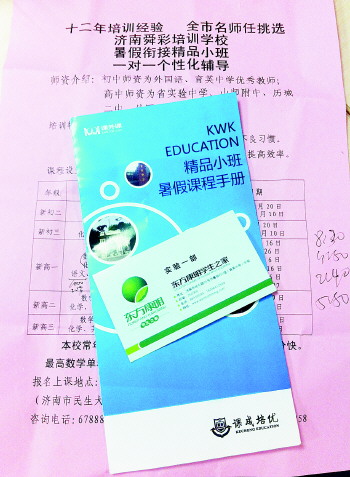 违法培训机构的招生宣传单。    本报记者 戚云雷 摄