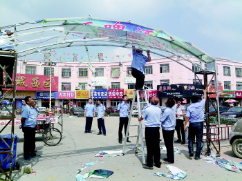 近日,德州经济技术开发区市场监督管理局牵头,组织相关单位执法人员,联合检查8处市场及大型商场,拆除查扣违章牌匾17块。 本报记者 孙婷婷 通讯员 刘贵连 摄影报道