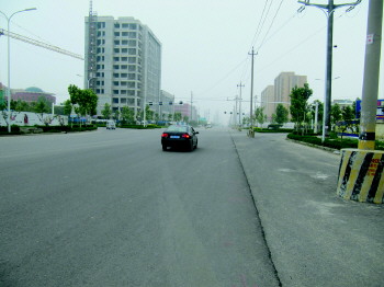 14日上午9时许,记者沿清平路与卧龙西街路口向东走发现,横向宽约20余米的道路已经有车辆通行,道路两侧电线杆所在的路面相对低于主干道几公分的高度,由于通路不久,路面上还没有进行路面标识油漆喷刷。