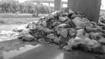 在立交桥下堆放的垃圾渗出黑色污水,气味难闻。 徐良 摄