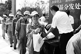 近日,济宁高新区总工会举行“关爱职工金秋送爽”活动。来自高新区机关事业单位干部员工、30家企业员工、一线交警、环卫保洁人员、农民工代表等400余人接受了雨伞、饮水杯等慰问品。