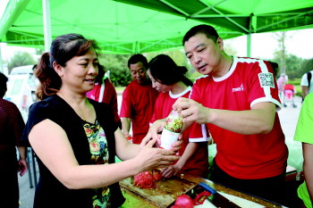 安利公司志愿者正在与市民互动。