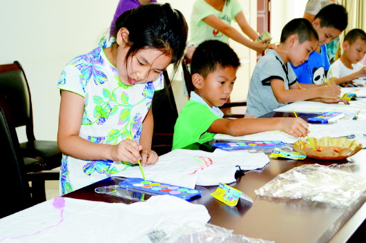 活动中,小朋友们充分发挥自己的想象力,用五彩的画笔在文化衫上进行创作。一件件作品形式多样,内容丰富,童趣盎然,充分显示出小朋友们丰富的想象力、创造力和无拘无束的表现力。通过此次活动的开展,让社区儿童体验了自由表现和创造的快乐,促进了他们的个性发展,更增进了他们同辈之间的情感交流,丰富了社区儿童的暑期文化生活。(许建立)