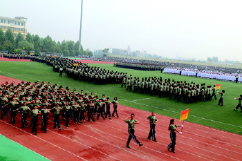 近日,山东现代学院(筹)举行2014级新生开学典礼,这标志着学院新学期工作正式拉开序幕。刘春静董事长在武警济南支队孙树宁少校的陪同下检阅了军训方阵。各方队按顺序依次通过主席台进行分列式汇报表演。7个学院12个方队的学生以严整的军容、昂扬的斗志、矫健的步伐、嘹亮的口号展示了“90后”大学生奋发向上的精神风貌和朝气蓬勃的青春气息。
