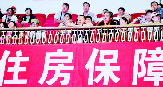 廉租房摇号是困难群体最关注的环节,大家紧盯摇号大屏,期待更多幸运。(资料片) 本报记者 王媛 摄