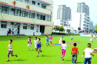 9月1日上午,枣庄市各中小学2014年至2015年新学期正式开始。新一批一年级的小学生也迎来了学生生涯的第一堂课。第一天,小学生们有的对周围的环境充满兴趣,有的则有些怯场。在老师的引导下,“老生”也努力收心,适应新学期。图中,逸夫小学的小学生们在新铺设的活动场地上快乐地奔跑。 本报记者 杨霄 摄影报道