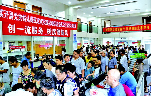 9月2日一大早,天桥区房管大厅内,市民排起长队扎堆申请公租房。当日是公租房廉租房并轨运行申请首日,济南市各区房管服务大厅申请人都爆棚。工作人员提醒说,申请截止到9月30日,申请者没必要都挤在这几天。 赵奎芬 摄