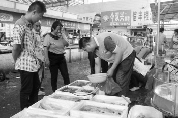 中秋节临近,海鲜价格在近两天时间内每斤上涨了四五元,据了解,价格与去年同期相比稍便宜些,但人气却显冷清。9月2日,市民在迎宾大市场上挑选海鲜。 本报记者 王小会 摄