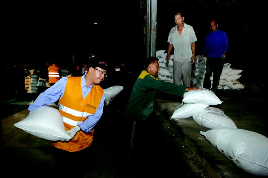 图为济铁工作人员将货物搬运到货物快运列车上。通讯员 张勇 摄