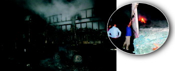 ▲塑料制品遇热后融化,顺着车体 向外流淌