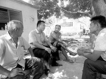张景振在街头同村民拉家常了解村民的生产生活情况。