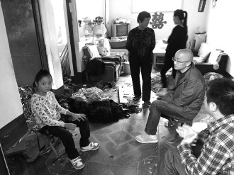 西凫山小学校长韩伟及在校老师到小悦家走访。 本报记者 韩微 摄
