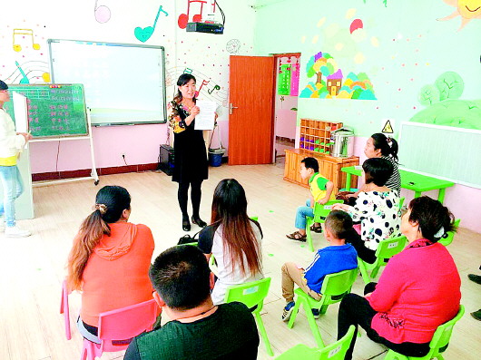 幼儿园园长在向家长解释新的娃娃车接送办法。