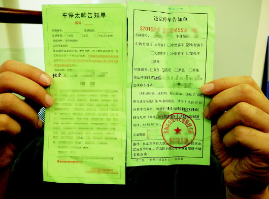 “车停太帅告知单”和违法停车告知单看起来很像。