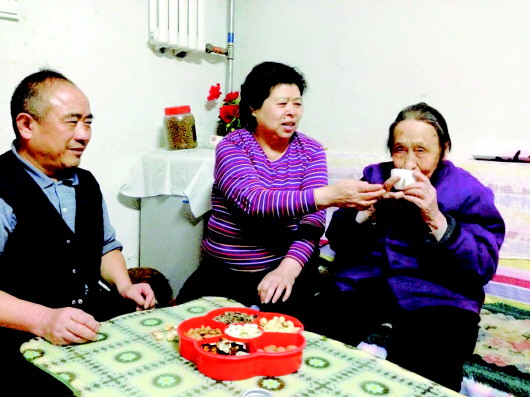 苏有声、杨京玲夫妇常年照顾邻居王桂兰老人。